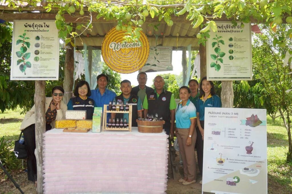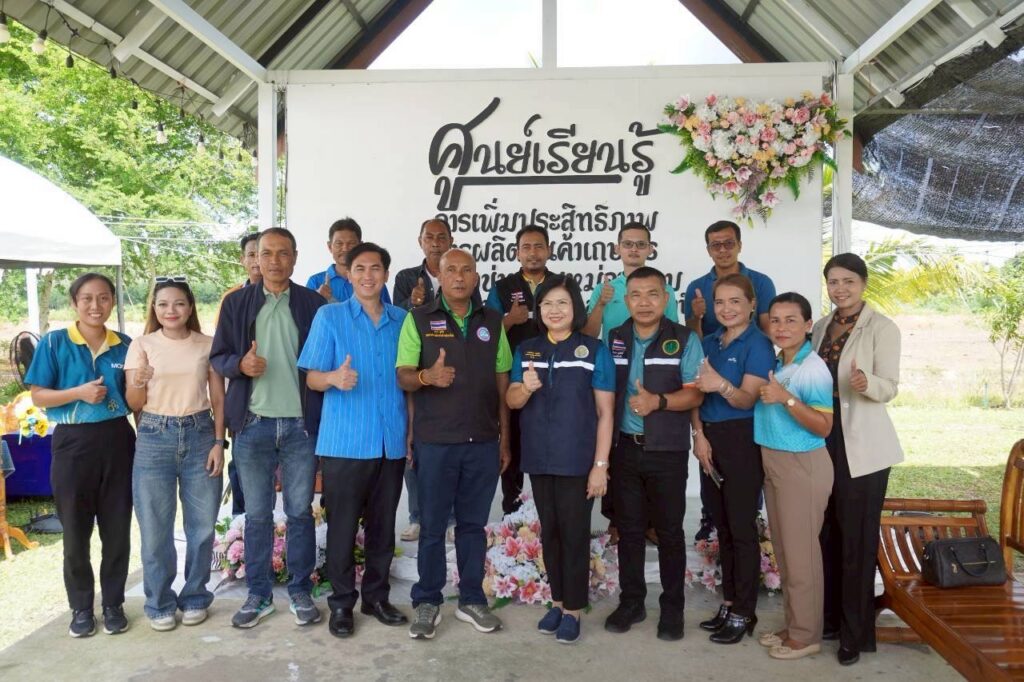วันที่ 27 กันยายน 2568 นายชัยพร นุภักดิ์ เกษตรจังหวัดสุราษฎร์ธานี พร้อมด้วยนางกันยากร เพชรรัตน์ หัวหน้ากลุ่มส่งเสริมและพัฒนาการผลิต ร่วม กิจกรรมประชาสัมพันธ์เปิดศูนย์เรียนรู้การเพิ่มประสิทธิภาพการผลิตสินค้าเกษตร (ศพก.) ด้านหม่อนไหม ณ ที่ทำการศูนย์เรียนรู้การเพิ่มประสิทธิภาพการผลิตสินค้าเกษตร เครือข่ายด้านการผลิตและแปรรูปหม่อนผล ตำบลทุ่งเตาใหม่ อำเภอบ้านนาสาร จังหวัดสุราษฎร์ธานี ซึ่งดำเนินการโดยศูนย์หม่อนใหม่เฉลิมพระเกียรติ สมเด็จพระนางเจ้าสิริกิติ์ พระบรมราชินีนาถ ชุมพร โดยมีวัตถุประสงค์เพื่อถ่ายทอดองค์ความรู้ด้านหม่อนไหม ให้แก่เกษตรกรนักเรียนนักศึกษา และผู้ที่สนใจรวมถึงประชาสัมพันธ์ ศูนย์เรียนรู้ด้านหม่อนไหม ให้เกิดการรับรู้ในวงกว้าง