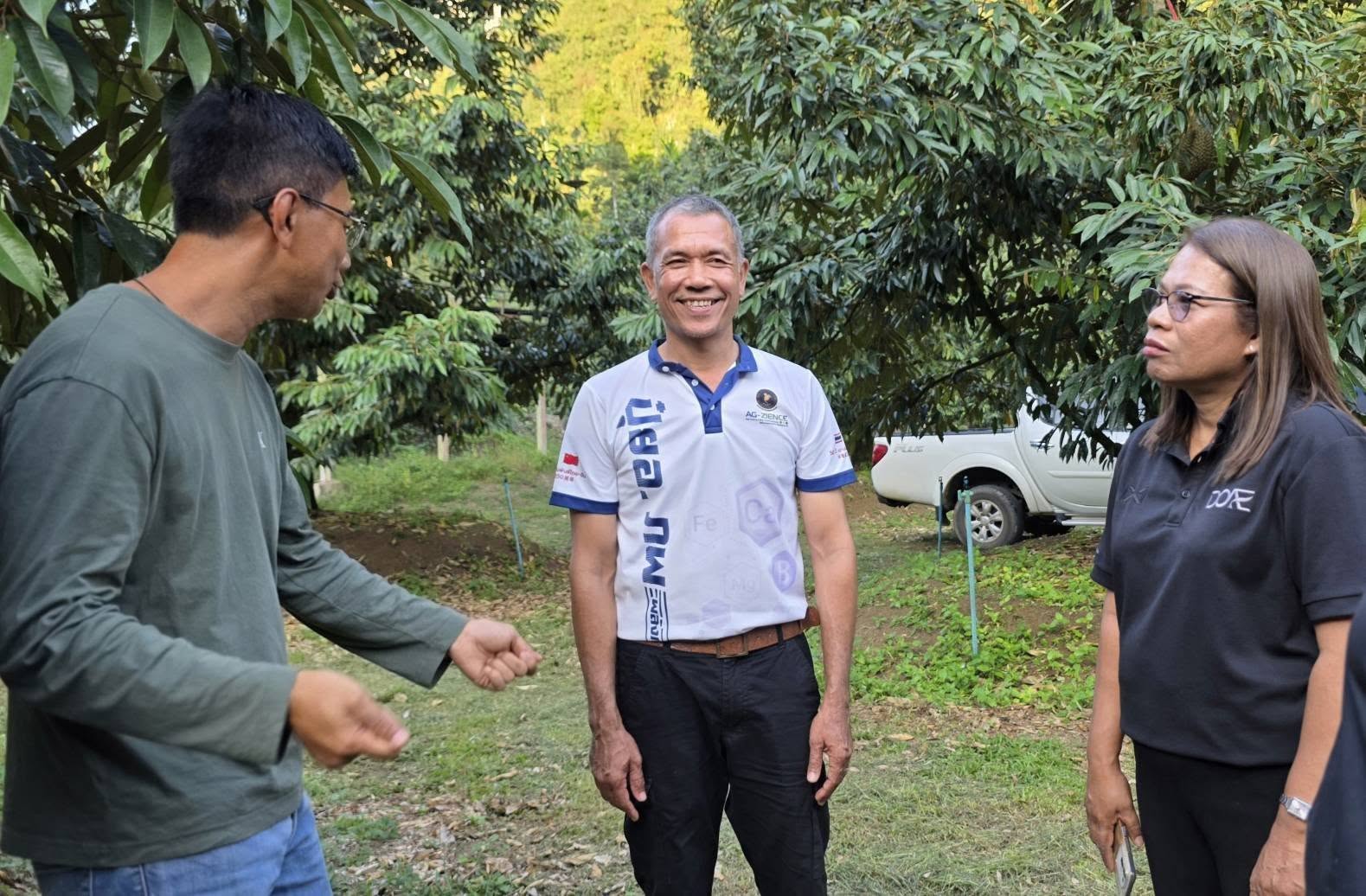​นำโดย Mr. Pow Chok, Mr. Vasanthan และ Mr. Ng Hock ในโอกาสเดินทางมาศึกษาดูงานและแลกเปลี่ยนเรียนรู้ด้านการจัดการทุเรียนในพื้นที่จังหวัดสุราษฎร์ธานี