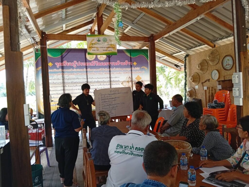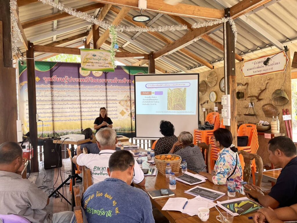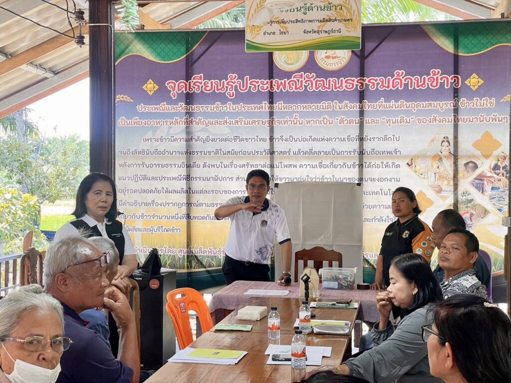 วันที่ 5 และ 10 กุมภาพันธ์ 2569 นางสาวกำไลทิพย์ เศรษฐ์วิชัย เกษตรจังหวัดสุราษฎร์ธานี มอบหมายนางใจทิพย์ ด่านปรีดานันท์ หัวหน้ากลุ่มอารักขาพืช พร้อมด้วยว่าที่ร.ต.พีรพงศ์ พิงคารักษ์ และนางสาวชิตชนก มาลาวิสุทธิ์ นักวิชาการส่งเสริมการเกษตรชำนาญการ กลุ่มอารักขาพืช สำนักงานเกษตรจังหวัดสุราษฎร์ธานี ร่วมดำเนินการอบรมให้ความรู้ แก่เกษตรกรที่เข้าร่วมกิจกรรมการเกษตรที่เป็นมิตรกับสิ่งแวดล้อม ภายใต้กิจกรรมส่งเสริมการจัดทำแปลงขยายผลการทำเกษตรที่เป็นมิตรกับสิ่งแวดล้อม ร่วมกับเจ้าหน้าที่สำนักงานเกษตรอำเภอไชยา โดยถ่ายทอดความรู้เกี่ยวกับการทำการเกษตร ด้วย 11 เทคโนโลยี climate smart technology เพื่อการปรับตัวการทำการเกษตรที่เท่าทันสภาพภูมิอากาศ ถ่ายทอดองค์ความรู้และเทคโนโลยีด้านการจัดการศัตรูพืชอย่างเหมาะสม และส่งเสริมการทำเกษตรที่คำนึงถึงสุขภาพผู้ผลิต ผู้บริโภค และสิ่งแวดล้อมอย่างยั่งยืน โดยมีนายธรรมรงค์ จิตนุ่ม พัฒนาการอำเภอไชยา เป็นวิทยากรให้ความรู้เรื่องการสร้างมูลค่าเพิ่มของผลผลิตทางการเกษตรและการพัฒนาผลิตภัณฑ์ที่เป็นมิตรกับสิ่งแวดล้อม ตั้งแต่กระบวนการผลิต แปรรูป บรรจุภัณฑ์ จนถึงการตลาด เพื่อยกระดับรายได้เกษตรกรในพื้นที่อย่างยั่งยืน อีกทั้งได้ร่วมจัดทำแผนพัฒนาสินค้าและผลิตภัณฑ์เกษตรที่เป็นมิตรกับสิ่งแวดล้อม ณ ที่ทำการกลุ่มวิสาหกิจชุมชนอนุรักษ์พันธุ์ข้าวหอมไชยา ตำบลโมถ่าย อำเภอไชยา จังหวัดสุราษฎร์ธานี เพื่อเสริมสร้างศักยภาพและเพิ่มมูลค่าสินค้าเกษตรในพื้นที่ต่อไป