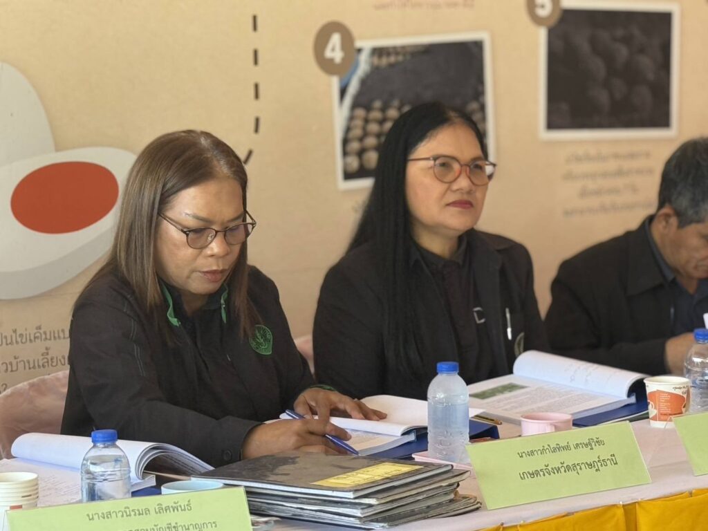 นางสาวกำไลทิพย์ เศรษฐ์วิชัย เกษตรจังหวัดสุราษฎร์ธานี พร้อมด้วยนางมยุเรศ ทองสุข หัวหน้ากลุ่มส่งเสริมและพัฒนาเกษตรกร เจ้าหน้าที่สำนักงานเกษตรจังหวัด ร่วมกับคณะกรรมการจากหน่วยงานภาคี ลงพื้นที่เพื่อเก็บข้อมูลและพิจารณาคัดเลือกวิสาหกิจชุมชนดีเด่น ระดับจังหวัด ซึ่งประกอบด้วย วิสาหกิจชุมชนไข่เค็ม อ.ส.ม. อ.ไชยา ,วิสาหกิจชุมชนบ้านไร่ ชายน้ำ ฟาร์มนก อ.ดอนสัก และวิสาหกิจชุมชนขมิ้นชันศาลาไทยและเกษตรแปรรูป อ.เมือง