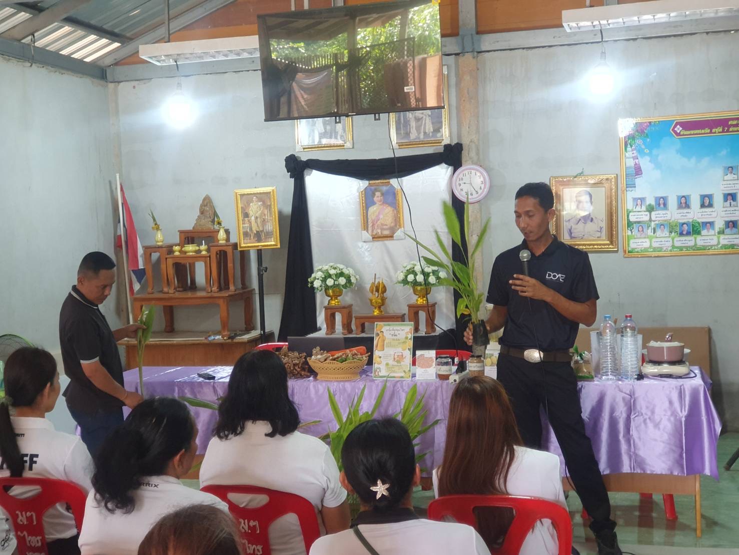 นายสุรชัย สุภาพ เกษตรอำเภอชัยบุรี พร้อมด้วยเจ้าหน้าที่สำนักงานเกษตรอำเภอชัยบุรี ร่วมกับศูนย์ขยายพันธุ์พืชที่ 4 จังหวัดนครศรีธรรมราช ศูนย์ส่งเสริมและพัฒนาอาชีพการเกษตร และสำนักงานเกษตรจังหวัดสุราษฎร์ธานี ร่วมอบรมเครือข่ายเกษตรกรผู้ผลิตและขยายพืชพันธุ์ดีของศูนย์ขยายพันธุ์พืช ภายใต้โครงการผลิตและขยายพืชพันธุ์ดีเพื่อเพิ่มประสิทธิภาพการผลิตและยกระดับความมั่นคงด้านอาหาร โดยมีวัตถุประสงค์เพื่อสร้างและพัฒนาเครือข่ายพืชพันธุ์ดี เพื่อยกระดับรายได้ให้กับเครือข่ายเกษตรกรผู้ผลิตพืชพันธุ์ดี ซึ่งกิจกรรมประกอบด้วยการบรรยายให้ความรู้เรื่องการขยายพันธุ์พืชตามกระบวนการโรงเรียนเรียนเกษตรกร การปลูกและดูแลรักษาขมิ้น และการใช้ประโยชน์จากขมิ้นให้แก่สมาชิกวิสาหกิจชุมชนกลุ่มผลิตเครื่องแกงสมุนไพรบ้านคลองเพร็ง จำนวน 30 ราย ณ ที่ทำการวิสาหกิจชุมชนกลุ่มผลิตเครื่องแกงสมุนไพรบ้านคลองเพร็ง หมู่ที่ 7 ตำบลไทรทอง อำเภอชัยบุรี จังหวัดสุราษฎร์ธานี