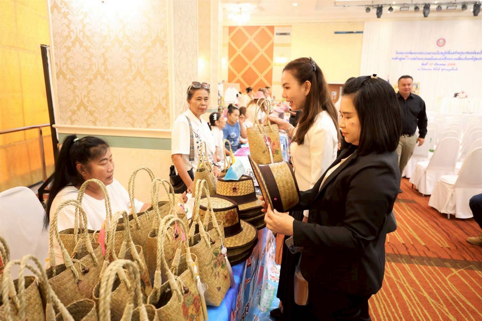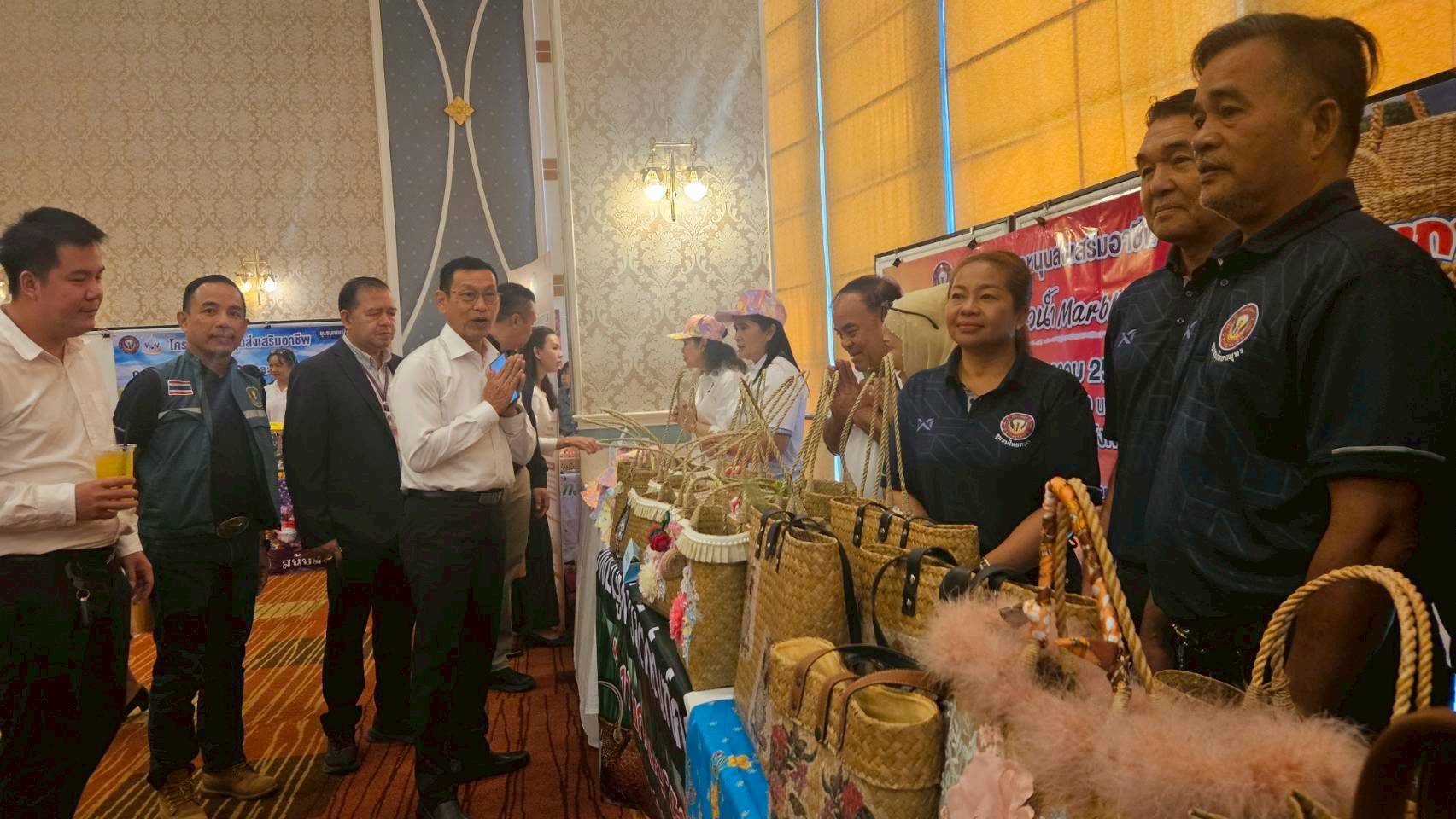 หลักสูตร “การสร้างแบรนด์และเล่าเรื่องราวผลิตภัณฑ์ชุมชน” ตามโครงการพัฒนากระบวนการเรียนรู้เพื่อสร้างชุมชนเข้มแข็งในการพัฒนาชุมชน ณ ห้องประชุมโรงแรมวังใต้ อำเภอเมืองฯ จังหวัดสุราษฎร์ธานี ซึ่งจัดขึ้นเพื่อขับเคลื่อนและส่งเสริมการมีส่วนร่วมในการพัฒนาเศรษฐกิจชุมชน และประชาสัมพันธ์ผลิตภัณฑ์ในชุมชนให้เป็นที่รู้จัก สร้างรายได้และเสริมสร้างความเข้มแข็งทางเศรษฐกิจในชุมชนไปพร้อมกับส่งเสริมให้มีการแลกเปลี่ยนเรียนรู้ผ่านกระบวนการคิด ต่อยอดพัฒนาเศรษฐกิจระหว่างชุมชน รวมทั้งการส่งเสริมให้เกิดทักษะ การคิด การวางแผน และมีแนวทางการบริหารจัดการโครงการให้เกิดประโยชน์ต่อการพัฒนาชุมชน โดยภายในกิจกรรมมีการจัดแสดงผลงานผลิตภัณฑ์ชุมชน 66 ชุมชน จดทะเบียนวิสาหกิจชุมชนแล้ว จำนวน 8 กลุ่ม