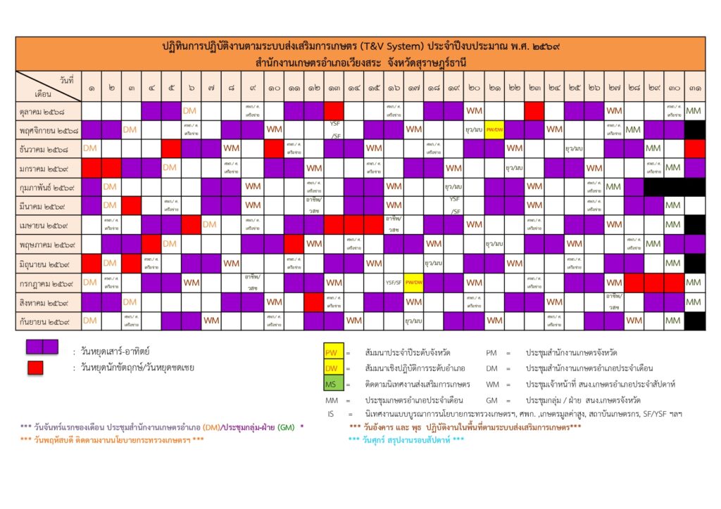 ปฏิทินการปฏิบัติงานตามระบบส่งเสริมการเกษตร (T&V System) ปี 2569